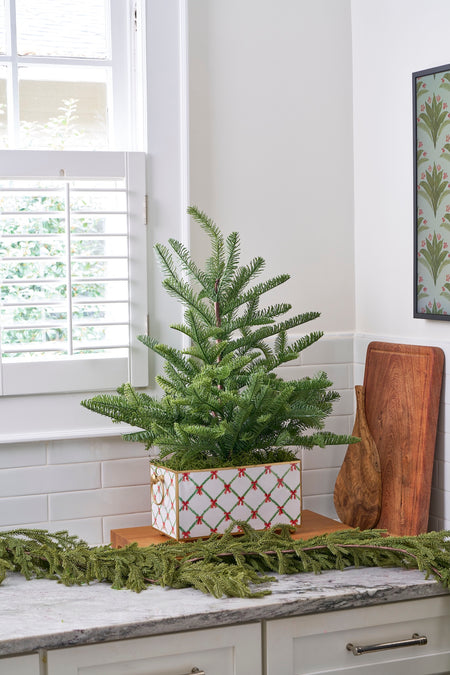 Bow Trellis Enameled Rectangular Cachepot Planter 6x12