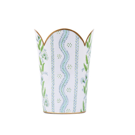 Emma Stripe Enameled Tulip Wastebasket - Blue & Green