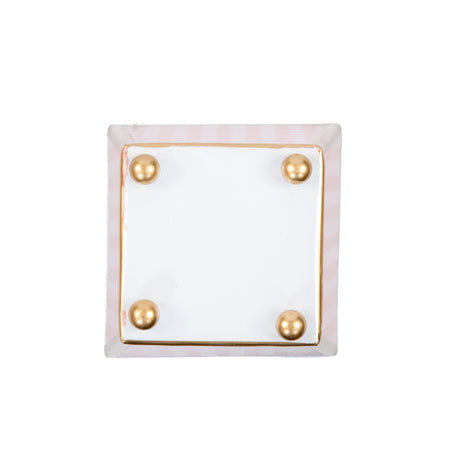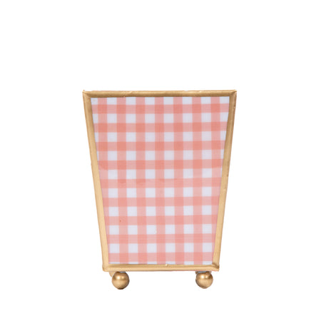 Gingham Enameled Square Cachepot Planter - Coral