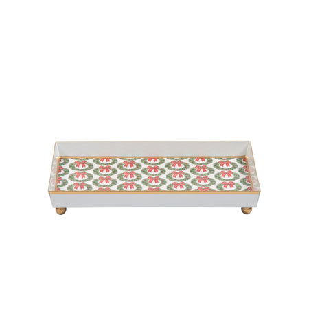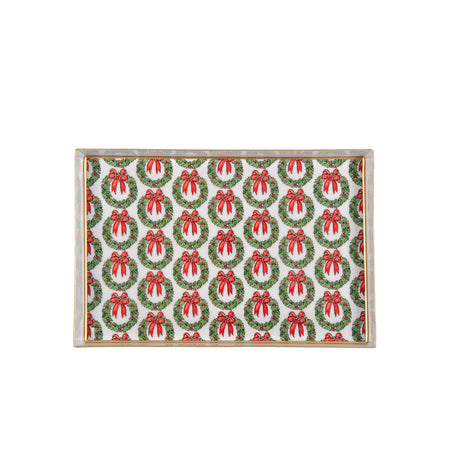 Holly Wreath Bow Enameled Oliver Tray 8x12