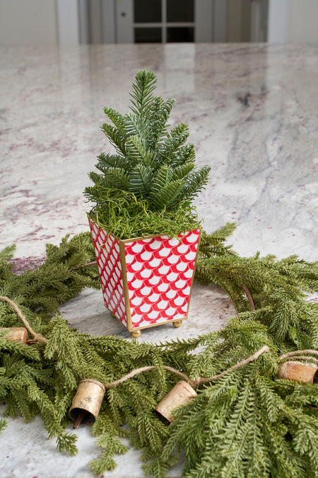 Scales Enameled Square Cachepot Planter - Red